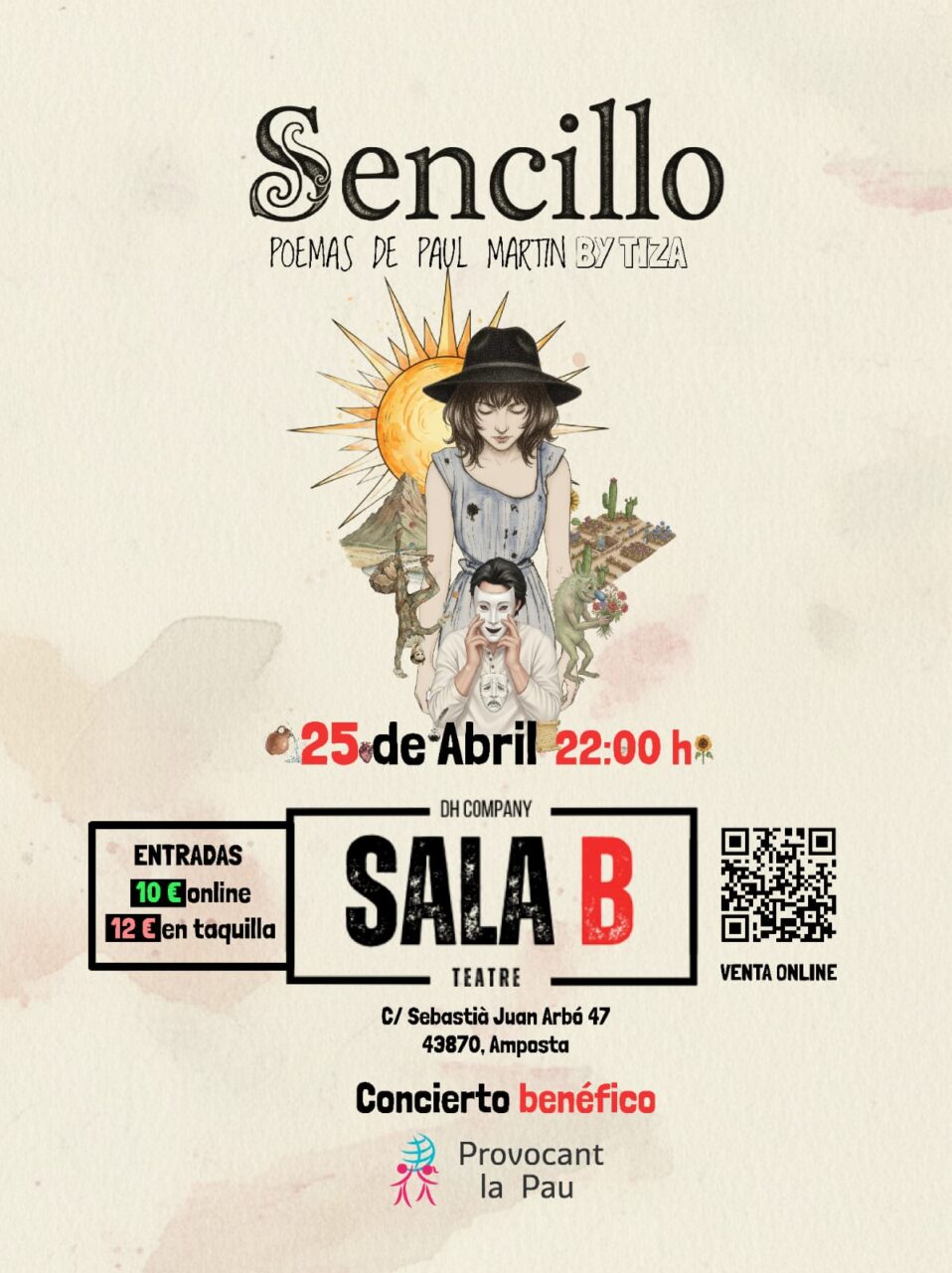 Dissabte 25 d’abril a les 22 h presentació musical de SENCILLO, amb poemes de PAUL MARTIN by TIZA.